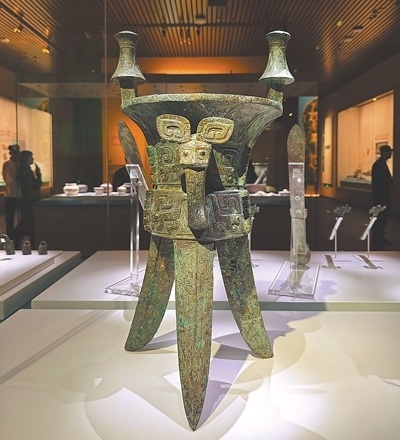 殷墟位于河南安陽(yáng)市西北郊,是中國(guó)第一個(gè)有文獻(xiàn)記載并經(jīng)甲骨文及考古發(fā)掘所證實(shí)的商代晚期都城遺址,也是世界青銅文明的重要代表。殷墟博物館與殷墟宗廟宮殿區(qū)隔河相望,是全景式展現(xiàn)商文明的國(guó)家重大考古專題博物館。圖為殷墟博物館里展出的殷墟婦好墓出土的銅斝。人民網(wǎng)俄文專家 葉列娜·達(dá)維多娃攝 殷墟博物館是一座歷史文化的寶庫(kù)。在這里,我近距離地觀察一件件青銅器,仿佛看到其上閃爍著的中國(guó)古人智慧的火花;我端詳一片片的甲骨,試圖解讀那些古老的文字,仿佛在與中國(guó)古人跨越時(shí)空對(duì)話。在這里,我看到了考古學(xué)家如何不遺余力地保護(hù)歷史,也觀察到年輕的甲骨文愛好者們不斷用新鮮創(chuàng)意為文物保護(hù)注入新的生命力,這份傳承讓我深受觸動(dòng)。