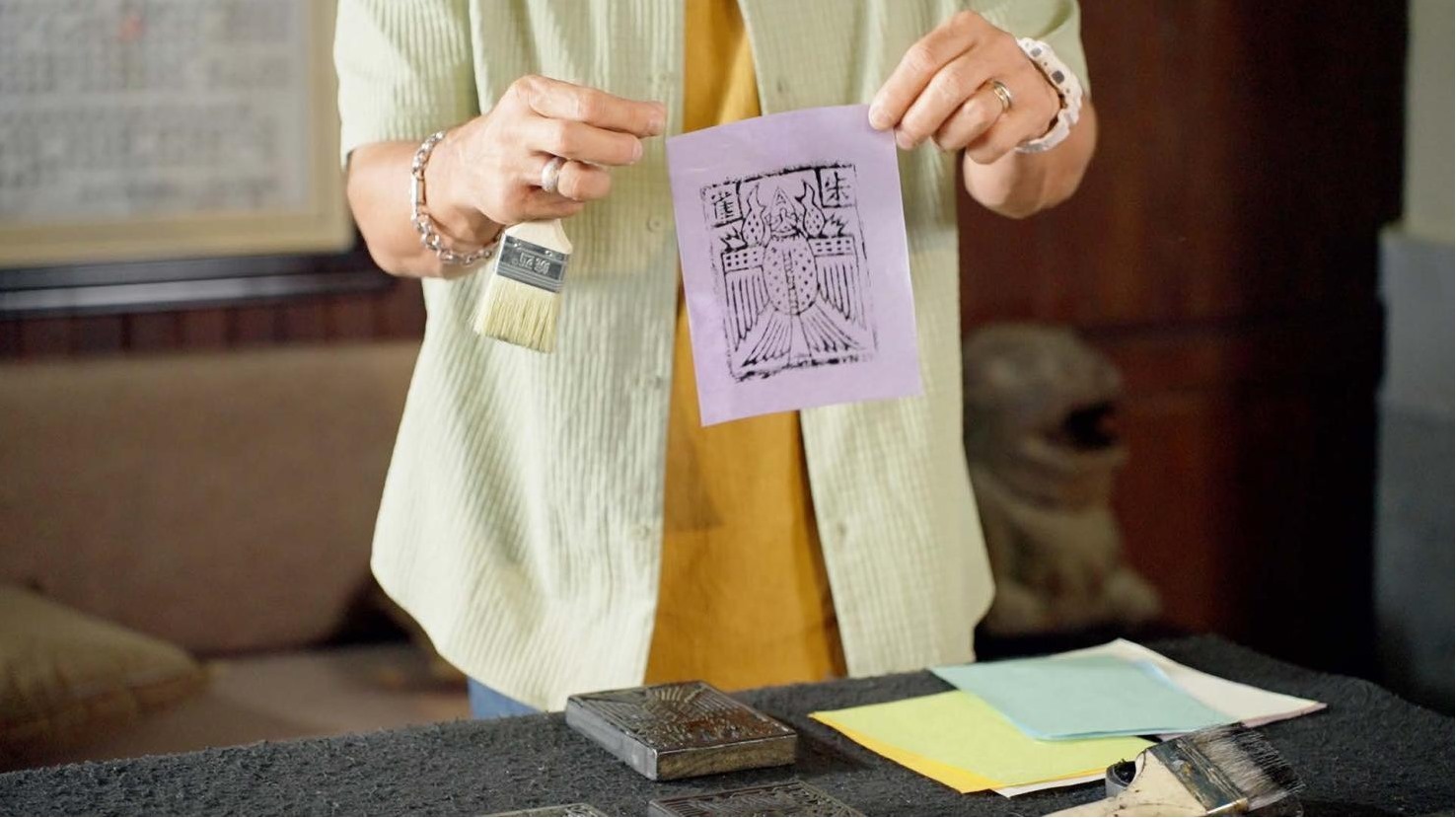 林登與助手一同制作大理“非遺”甲馬。