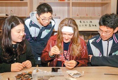 穿漢服、習(xí)古禮,看年畫、做香囊,進(jìn)校園、賽乒乓……不久前,應(yīng)河北衡水中學(xué)之邀,25名美國(guó)青少年來到河北省衡水市,與中國(guó)同齡人一起交流學(xué)習(xí)。這些美國(guó)青少年來自美國(guó)華盛頓特區(qū)、馬薩諸塞州、佛羅里達(dá)州、得克薩斯州的6所學(xué)校。他們?cè)谥袊?guó)結(jié)識(shí)新友、收獲新知,解鎖不一樣的中國(guó)體驗(yàn)。
