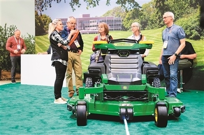 圖為在美國(guó)拉斯維加斯消費(fèi)電子展上,人們觀看一款農(nóng)用車(chē)輛。