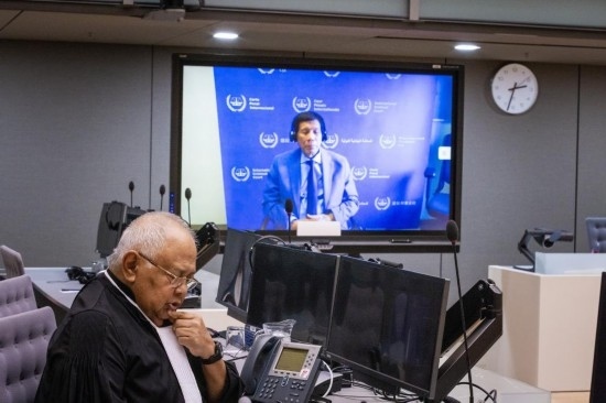 這是3月14日在荷蘭海牙拍攝的國際刑事法院第一預(yù)審?fù)ガF(xiàn)場,菲律賓前總統(tǒng)杜特爾特以視頻連線方式出席。新華社發(fā)(國際刑事法院供圖)