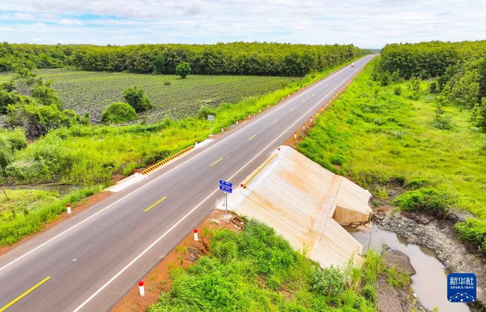這是2024年7月14日在柬埔寨特本克蒙省拍攝的71C號國家公路(無人機(jī)照片)。新華社發(fā)(尼多拉攝)