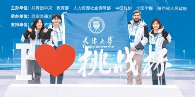 天津大學馬來西亞籍學生陳勁詠(左二)與同學參加第十四屆挑戰(zhàn)杯全國總決賽。