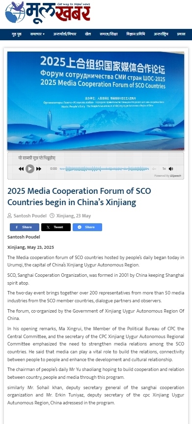 尼泊爾穆爾卡巴爾新聞網(wǎng)報道2025上合組織國家媒體合作論壇