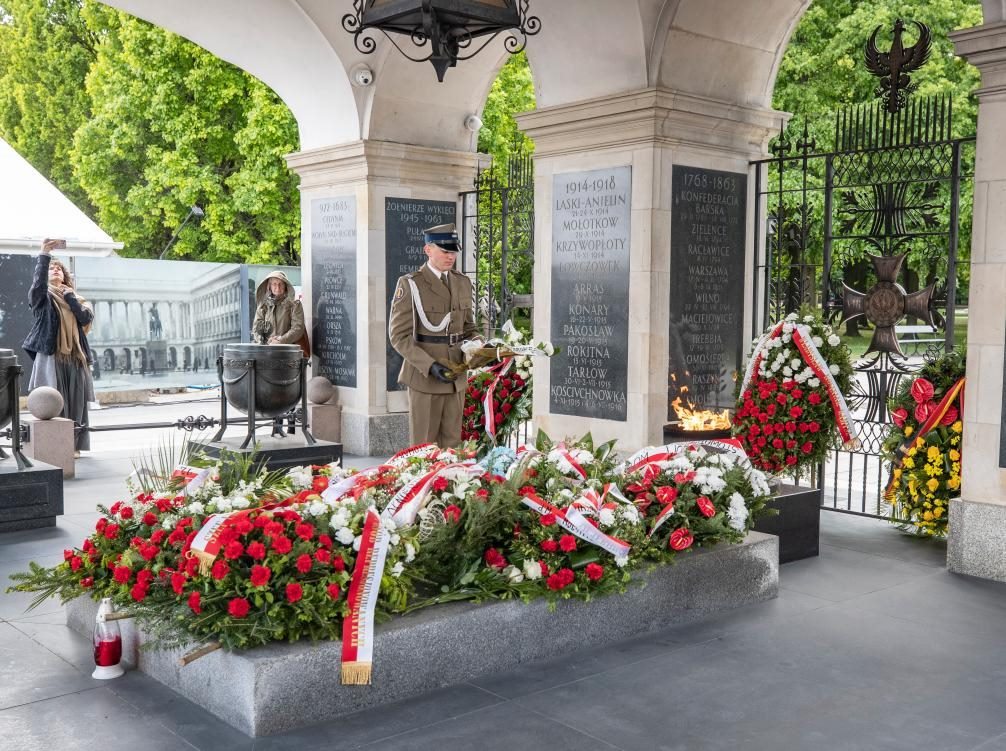 5月8日,人們在波蘭首都華沙的無名烈士墓參加紀(jì)念活動。新華社記者 張帆 攝