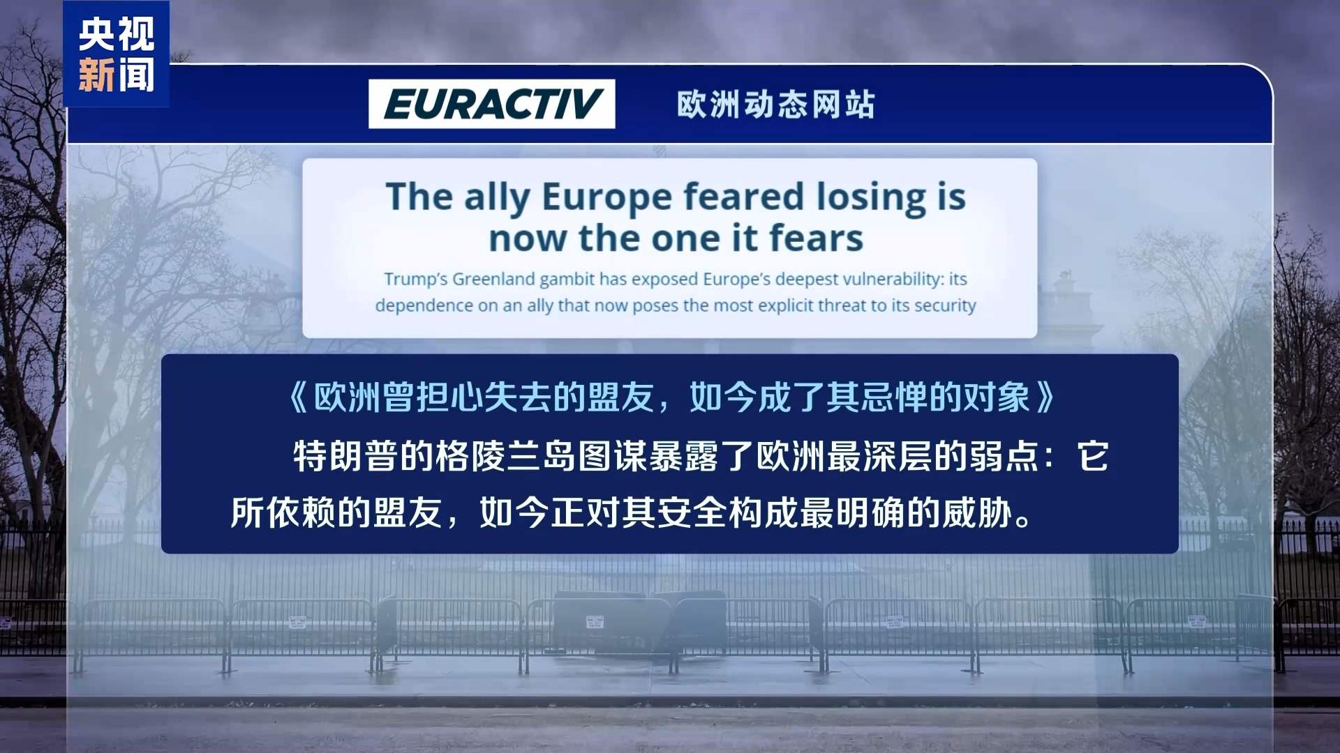 歐洲動態(tài)網(wǎng)站6日以《歐洲曾擔(dān)心失去的盟友,如今成了其忌憚的對象》為題評論說,“特朗普的格陵蘭島圖謀暴露了歐洲最深層的弱點(diǎn):它所依賴的盟友,如今正對其安全構(gòu)成最明確的威脅?!蔽恼逻€提醒說,我們正進(jìn)入一個“強(qiáng)權(quán)即公理”的新世界——而歐洲人對此毫無準(zhǔn)備?;蛟S,格陵蘭島可能帶來的羞辱,將促使歐洲人反思這一現(xiàn)狀,并最終采取行動改變局面。