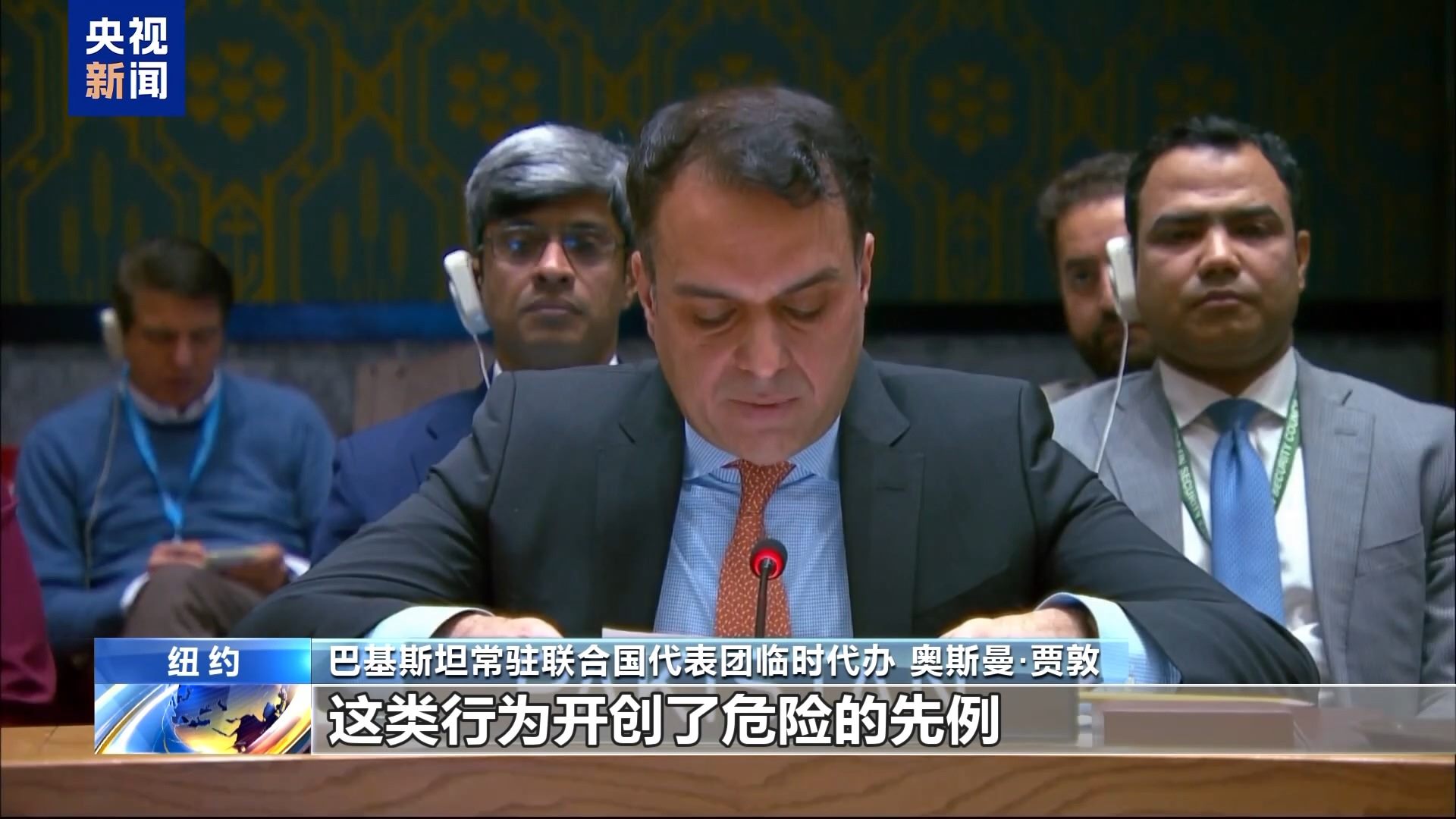 巴基斯坦常駐聯(lián)合國代表團臨時代辦 奧斯曼·賈敦:這類行為開創(chuàng)了危險的先例,對全球法律框架的根基構(gòu)成威脅。