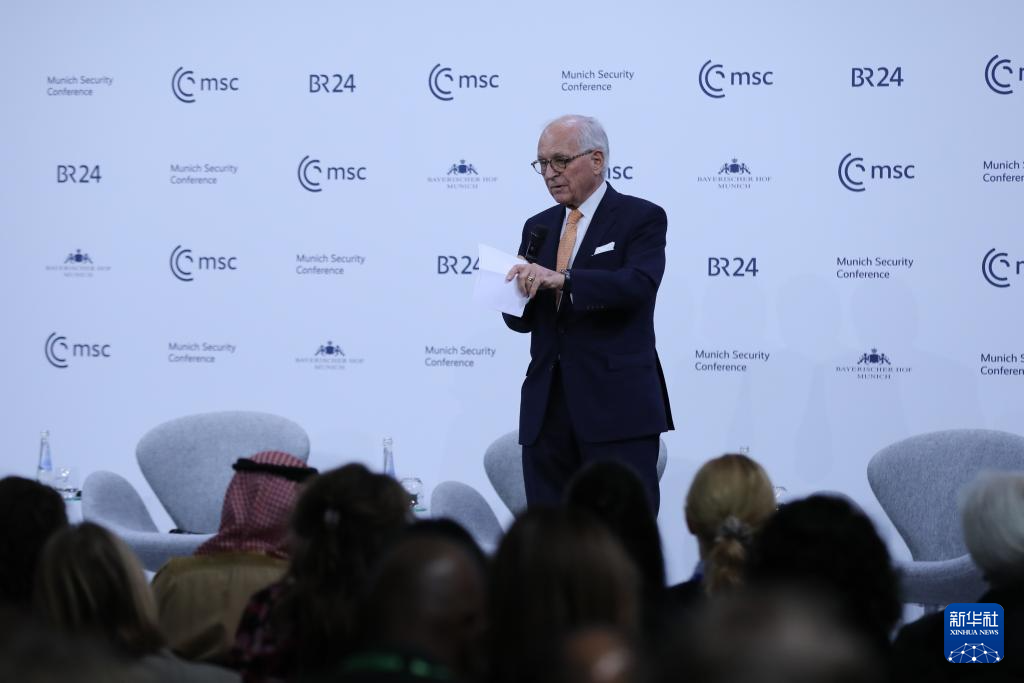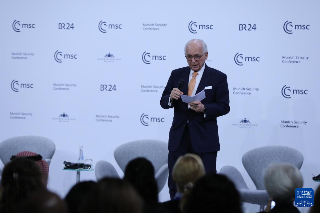 2月15日,在德國慕尼黑,慕安會主席沃爾夫?qū)ひ辽旮駹栐陂]幕式上致辭。新華社記者 杜哲宇 攝