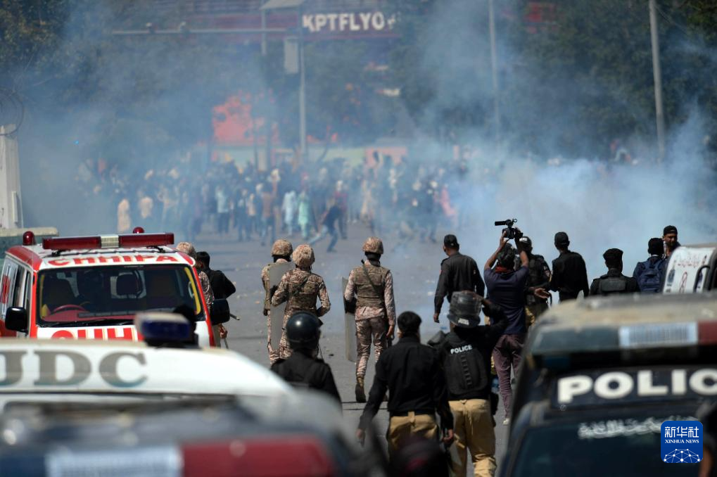 3月1日,在巴基斯坦南部城市卡拉奇的美國駐卡拉奇領(lǐng)事館附近,抗議人群與安全人員發(fā)生沖突。
