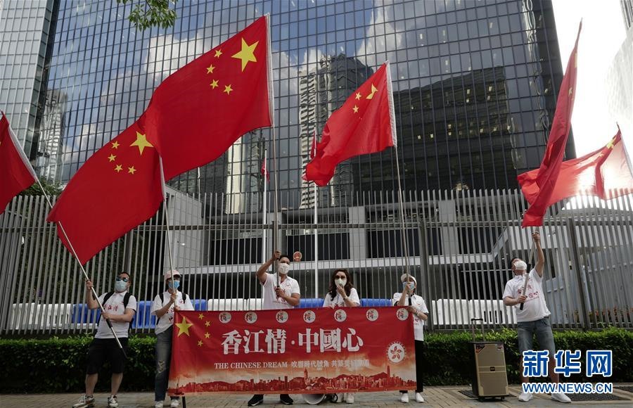 6月4日,在香港金鐘,香港市民慶祝香港特區(qū)立法會(huì)三讀通過《國歌條例草案》。當(dāng)日下午,香港特區(qū)立法會(huì)三讀通過《國歌條例草案》,《國歌條例》將于6月12日正式刊憲實(shí)施。新華社記者王申攝