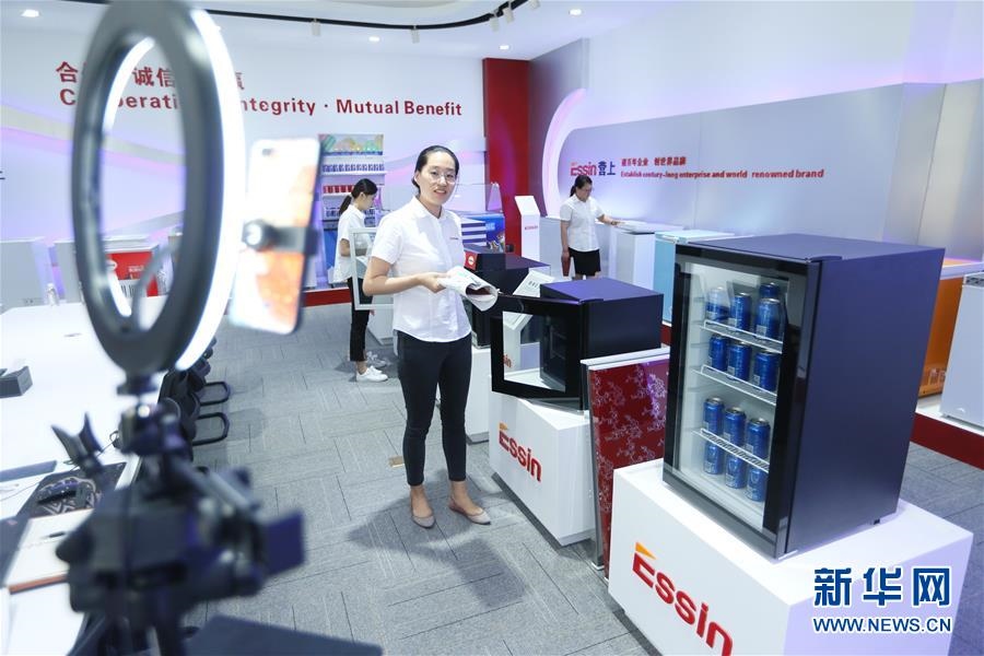 6月15日,在青島營上電器有限公司,營銷人員通過廣交會直播平臺推介出口到海外市場的冰箱。當日,第127屆廣交會拉開帷幕。這是我國首次將廣交會整體性“搬上云端”。本屆廣交會會期10天,保持24小時不間斷,按16大類商品設(shè)置50個展區(qū),180萬件展品同期上線展示。新華社發(fā)(梁孝鵬攝)