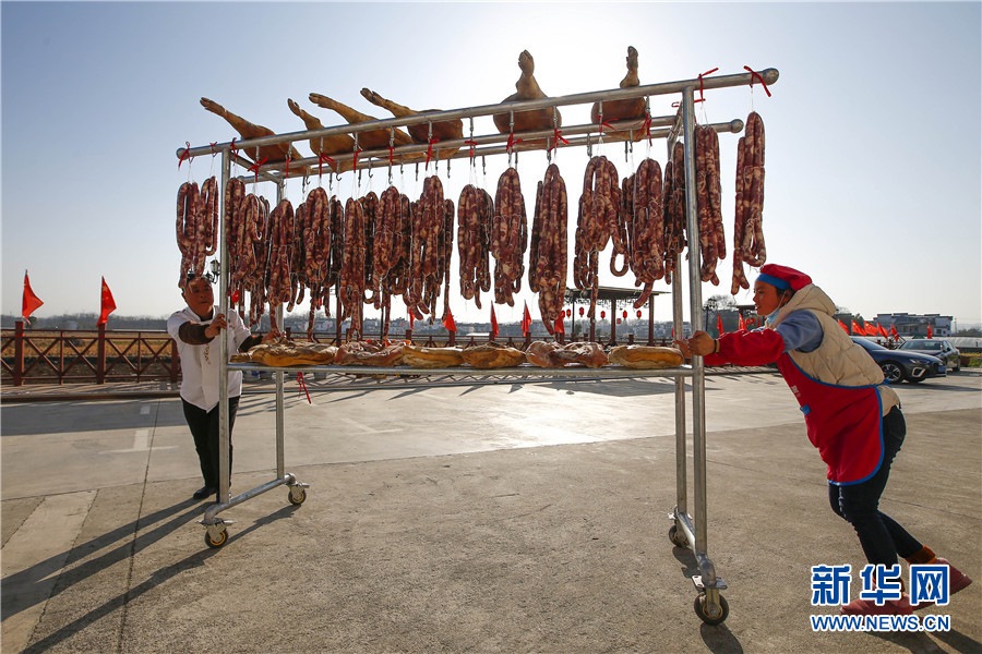 1月19日,在黃山市徽州區(qū)西溪南鎮(zhèn),村民正在腌制臘味。