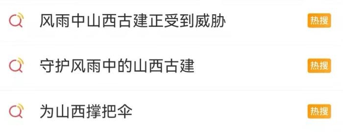 近日,“風(fēng)雨中山西古建正受到威脅”“守護(hù)風(fēng)雨中的山西古建”“為山西撐把傘”等話題登上微博熱搜。