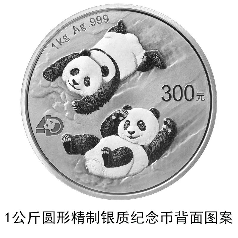 該套貴金屬紀(jì)念幣正面圖案均為北京天壇祈年殿,并刊國名、年號;背面圖案均為大熊貓滑雪嬉戲場景,輔以“熊貓金幣發(fā)行40周年標(biāo)識”元素,并刊面額、重量及成色。