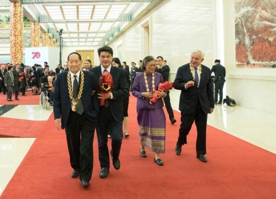 2019年9月29日,國家勛章和國家榮譽稱號獲得者在儀式后步出人民大會堂金色大廳。經(jīng)中共中央批準(zhǔn),中華人民共和國國家勛章和國家榮譽稱號頒授儀式于9月29日上午10時在北京人民大會堂隆重舉行。新華社記者王曄攝