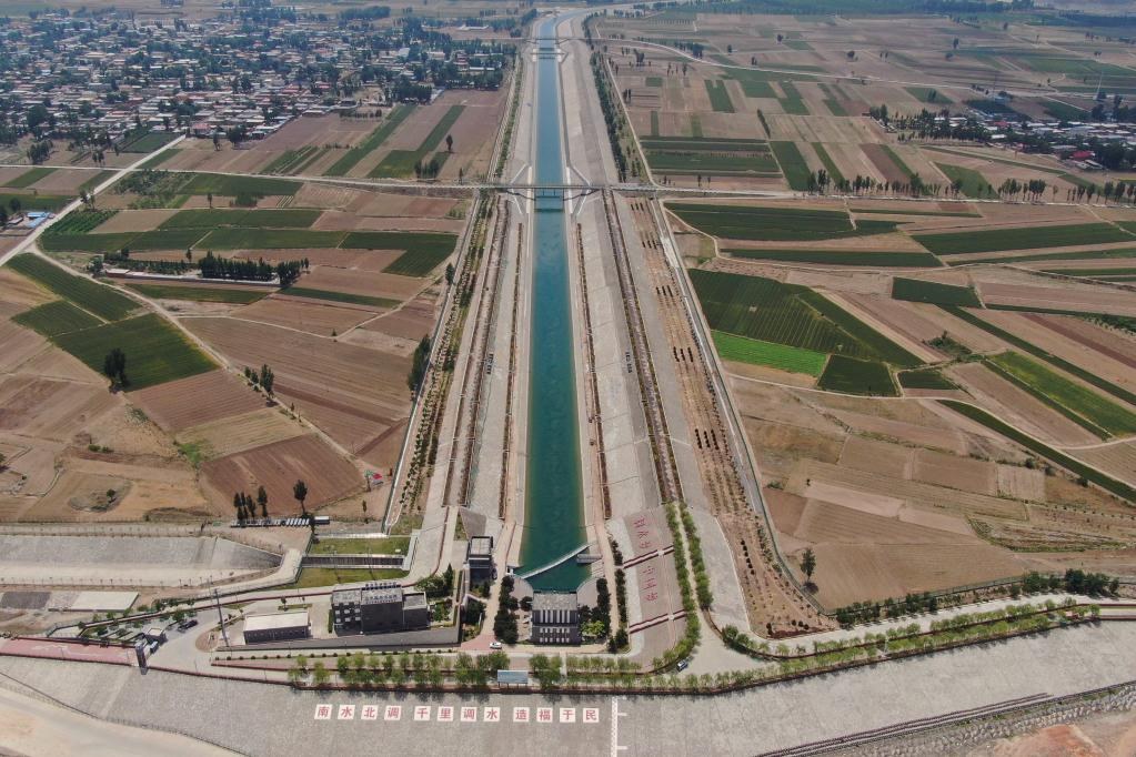 圖為南水北調(diào)中線位于京冀交界處的明渠和北拒馬河暗渠節(jié)制閘,北拒馬河暗渠節(jié)制閘是進(jìn)入北京的南水從明渠轉(zhuǎn)入暗涵的交接點(diǎn)。