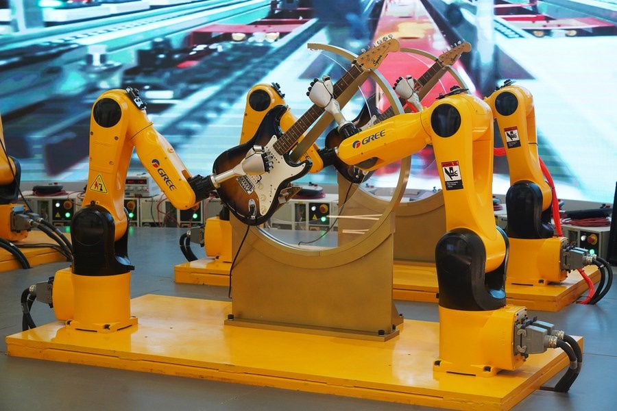 在贛州市格力小鎮(zhèn),機器人樂隊演奏音樂。新華社記者 萬象攝