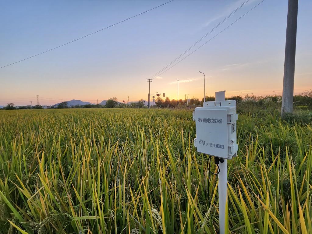 蕪湖三山經(jīng)濟(jì)開(kāi)發(fā)區(qū)一處稻田里的數(shù)據(jù)收發(fā)器。新華社記者 趙金正 攝