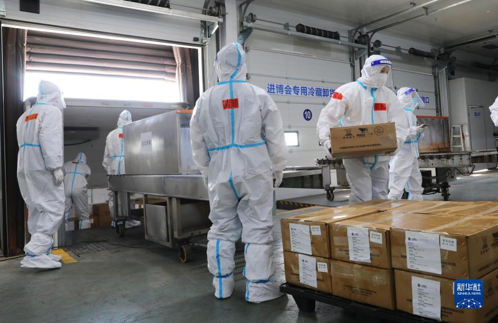 記者在現(xiàn)場看到,當(dāng)運輸進(jìn)口冷鏈?zhǔn)称氛蛊返能囕v到達(dá)后,工作人員馬上對司機(jī)進(jìn)行健康碼核驗和體溫檢測,并對車輛進(jìn)行消毒。裝卸過程中,司機(jī)實行“非必要不下車”。貨物入庫時,在完成外包裝消毒后,工作人員將展品拆除外包裝,對內(nèi)里的小包裝進(jìn)行消毒、核酸檢測,再重新裝箱、貼標(biāo)簽、放入暫存庫,之后再轉(zhuǎn)入合格儲存庫。