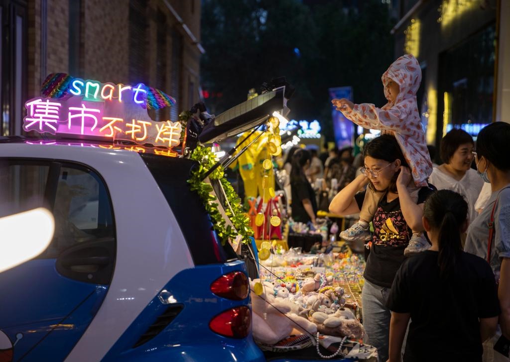 7月2日,游客在寧夏銀川市建發(fā)大閱城特色夜市購物。當日,第三屆“寧夏夜綻生活節(jié)”在寧夏銀川市建發(fā)大閱城中街拉開帷幕,吸引眾多游客前來體驗城市夜生活。新華社記者楊植森攝