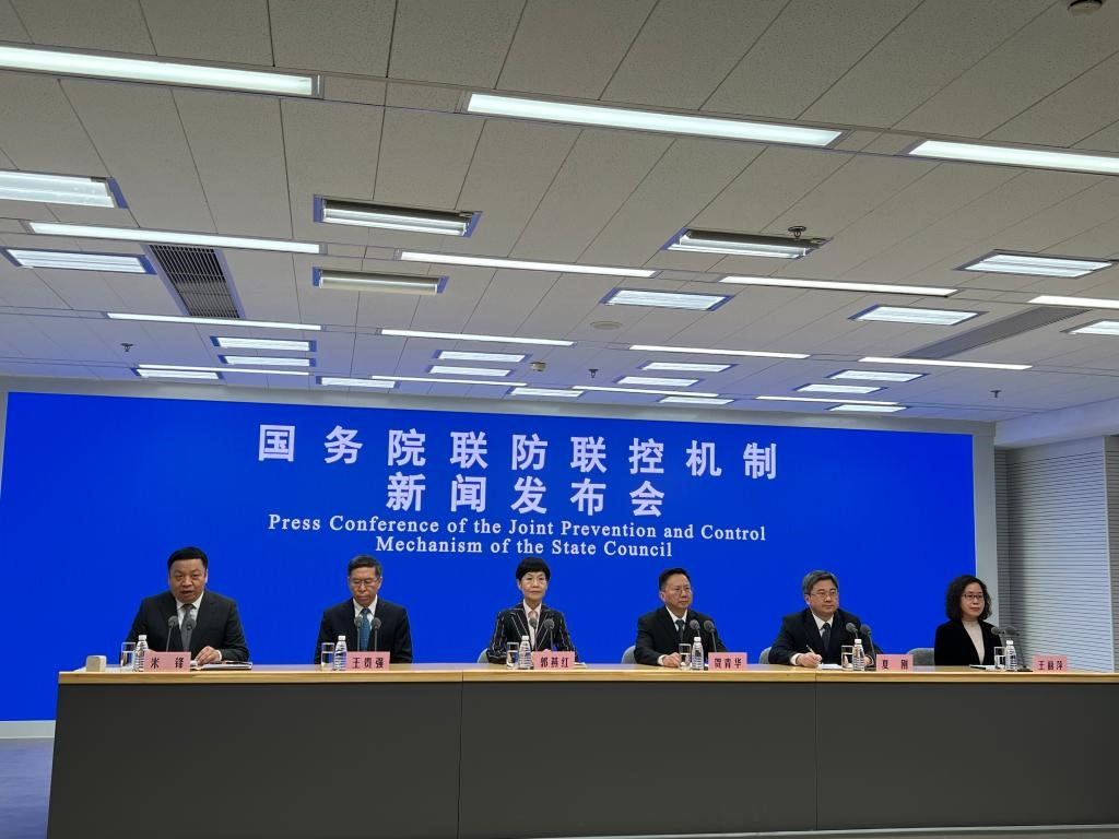 國務(wù)院聯(lián)防聯(lián)控機制新聞發(fā)布會現(xiàn)場。新華社記者 顧天成攝