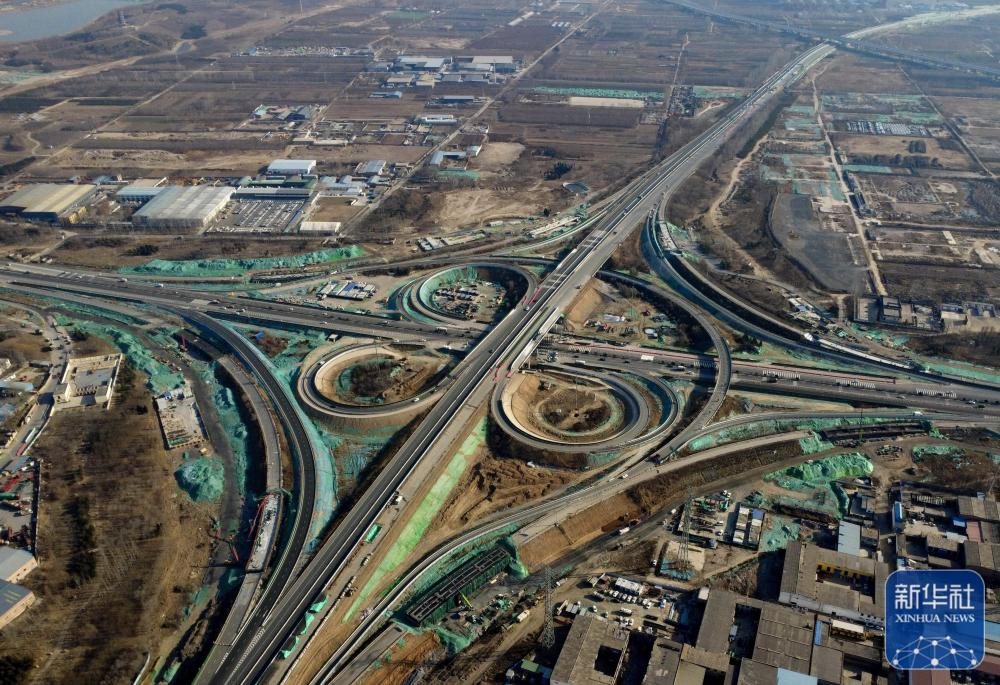 12月15日,工人在石家莊市北三環(huán)與復(fù)興大街互通工程建設(shè)工地施工(無人機(jī)照片)。 新華社記者 楊世堯 攝