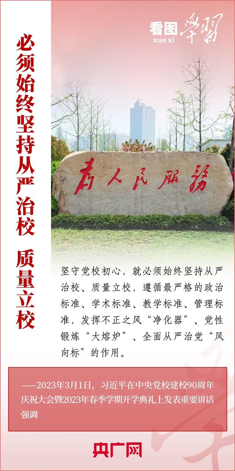3月1日,中共中央黨校舉行建校90周年慶祝大會暨2023年春季學期開學典禮。習近平總書記出席并發(fā)表重要講話。他強調(diào),黨校始終不變的初心就是為黨育才、為黨獻策。各級黨校要堅守這個初心,銳意進取、奮發(fā)有為,為全面建設社會主義現(xiàn)代化國家、全面推進中華民族偉大復興作出新的貢獻。一起來學習!