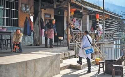 四川省北川羌族自治縣曲山鎮(zhèn)石椅村,村醫(yī)入戶走訪重點(diǎn)人群,提供醫(yī)療服務(wù)。 新華社記者 張超群攝