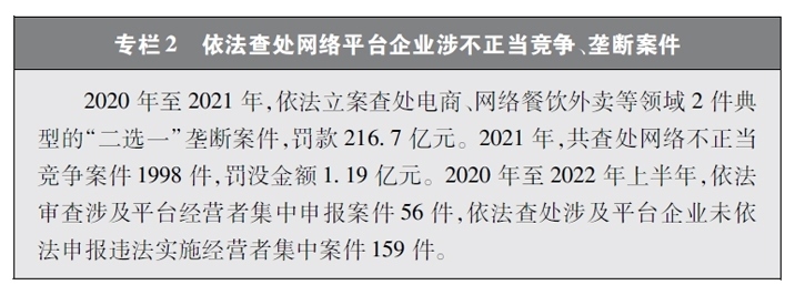 保障公平競(jìng)爭(zhēng)的網(wǎng)絡(luò)市場(chǎng)環(huán)境。隨著網(wǎng)絡(luò)平臺(tái)企業(yè)不斷擴(kuò)展自身的體量和實(shí)力,“掐尖式并購(gòu)”、無(wú)正當(dāng)理由屏蔽鏈接、“二選一”、大數(shù)據(jù)殺熟、流量挾持等妨礙市場(chǎng)公平競(jìng)爭(zhēng)的問題也逐漸凸顯。中國(guó)積極回應(yīng)人民群眾訴求,在支持網(wǎng)絡(luò)平臺(tái)企業(yè)創(chuàng)新發(fā)展的同時(shí),依法規(guī)范和引導(dǎo)資本健康發(fā)展,采取多種治理平臺(tái)競(jìng)爭(zhēng)失序的執(zhí)法舉措。聚焦大型網(wǎng)絡(luò)平臺(tái)價(jià)格欺詐、低價(jià)傾銷等重點(diǎn)問題,通過行政約談、行政指導(dǎo)、規(guī)則指引等多種監(jiān)管手段,整治壟斷和不正當(dāng)競(jìng)爭(zhēng)行為。圍繞民生、金融、科技、傳媒等重點(diǎn)行業(yè),依法審查涉及平臺(tái)經(jīng)營(yíng)者集中案件,防止可能妨礙市場(chǎng)競(jìng)爭(zhēng)和創(chuàng)新發(fā)展的并購(gòu)行為,引導(dǎo)網(wǎng)絡(luò)平臺(tái)企業(yè)增強(qiáng)合規(guī)意識(shí),規(guī)范自身經(jīng)營(yíng)行為。通過一系列行動(dòng),平臺(tái)經(jīng)濟(jì)市場(chǎng)環(huán)境不斷優(yōu)化,公平競(jìng)爭(zhēng)的行業(yè)生態(tài)穩(wěn)步向好,中小企業(yè)獲得更廣闊的發(fā)展空間,統(tǒng)一、開放、公平、競(jìng)爭(zhēng)、有序的網(wǎng)絡(luò)競(jìng)爭(zhēng)環(huán)境正在形成。