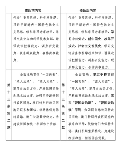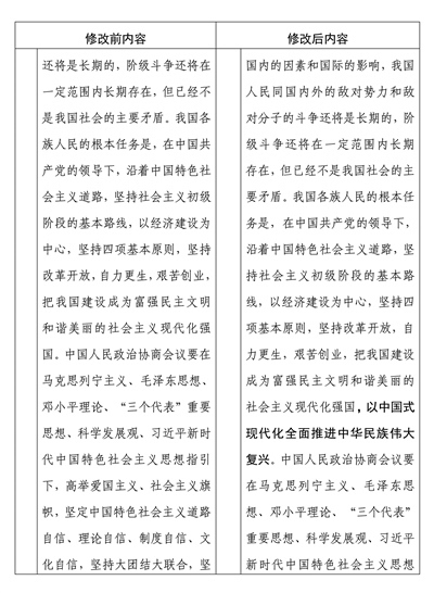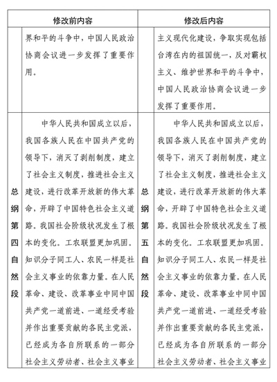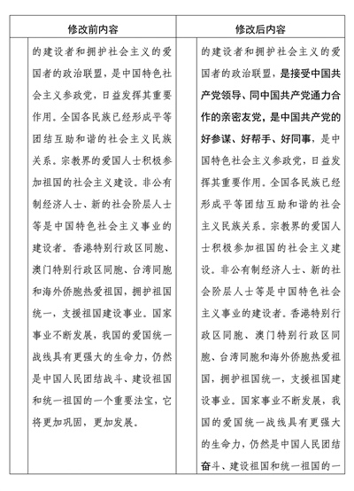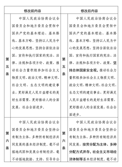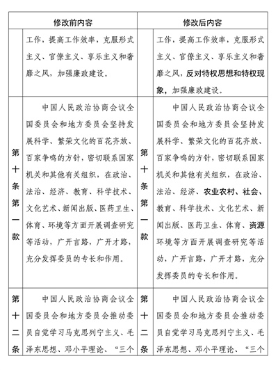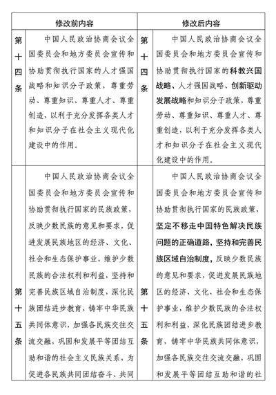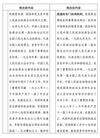 中國人民政治協(xié)商會(huì)議章程修改前后內(nèi)容對(duì)照表
