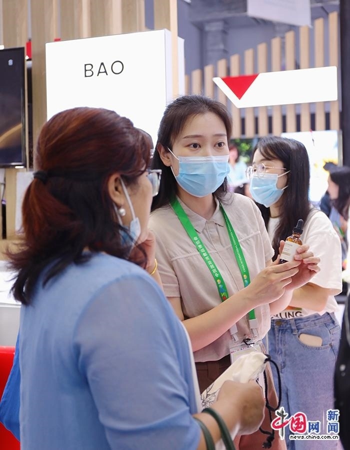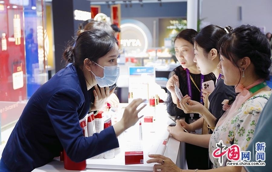 4月11日,工作人員為觀眾介紹護(hù)膚產(chǎn)品。中國(guó)網(wǎng)記者 吳亮 攝