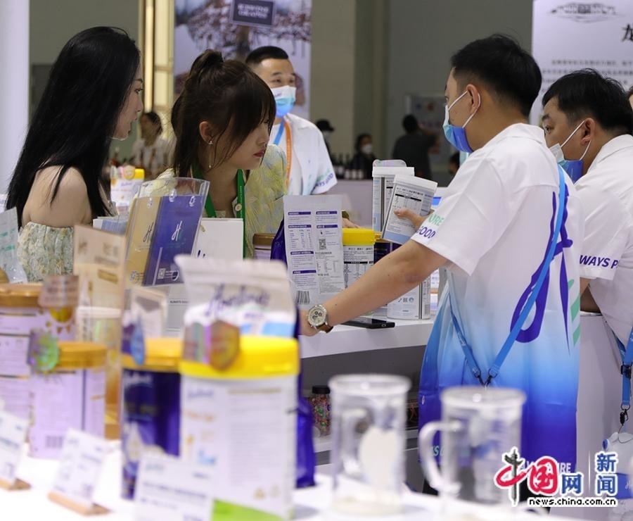4月11日,工作人員為觀眾介紹新西蘭奶粉。中國(guó)網(wǎng)記者 吳亮 攝