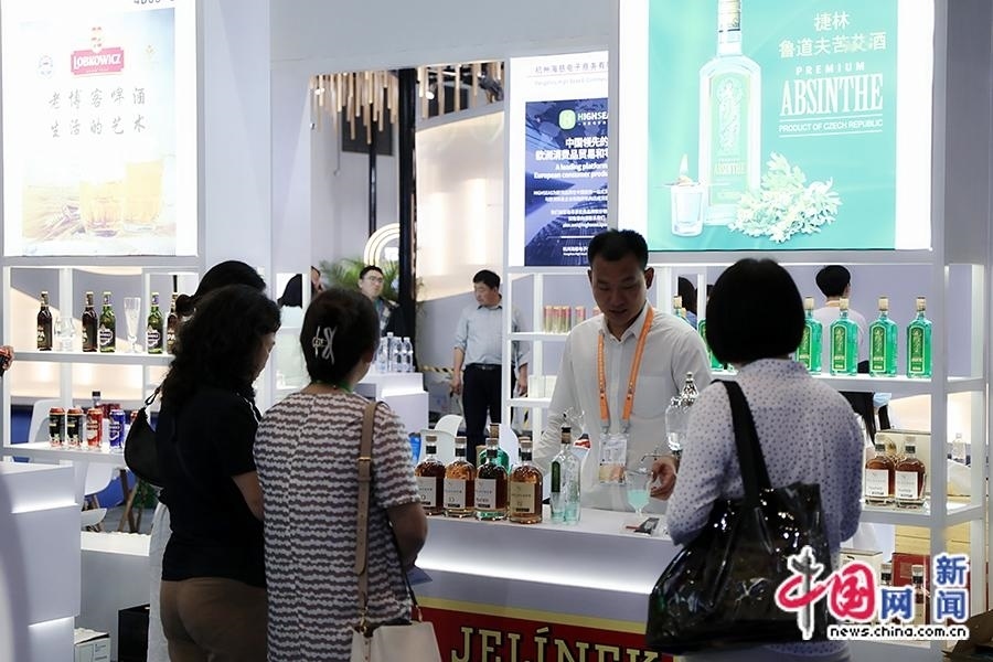 4月11日,工作人員為觀眾介紹捷克啤酒并提供試飲。中國(guó)網(wǎng)記者 吳亮 攝
