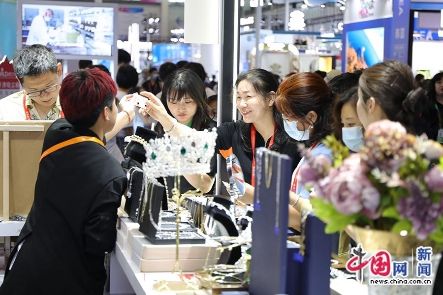 4月11日,工作人員為觀眾介紹耳環(huán)、項(xiàng)鏈等飾品。中國(guó)網(wǎng)記者 吳亮 攝