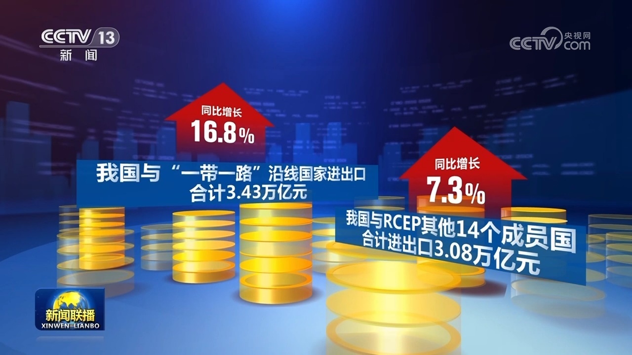 同期,我國與“一帶一路”沿線國家進(jìn)出口合計(jì)3.43萬億元,同比增長16.8%。我國與RCEP其他14個(gè)成員國合計(jì)進(jìn)出口3.08萬億元,同比增長7.3%。