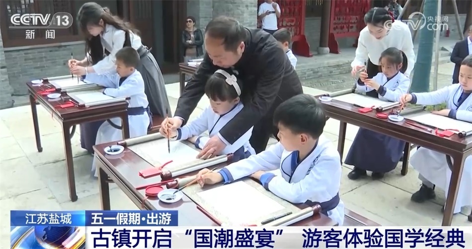 “五一”假期期間,江蘇鹽城鹽南高新區(qū)伍佑珠溪古鎮(zhèn)開啟了一場別開生面的“國潮盛宴”。大家追隨先賢的歷史足跡,在開筆禮、冠禮、六藝國學講堂等活動中體驗穿越千年的國學經(jīng)典。