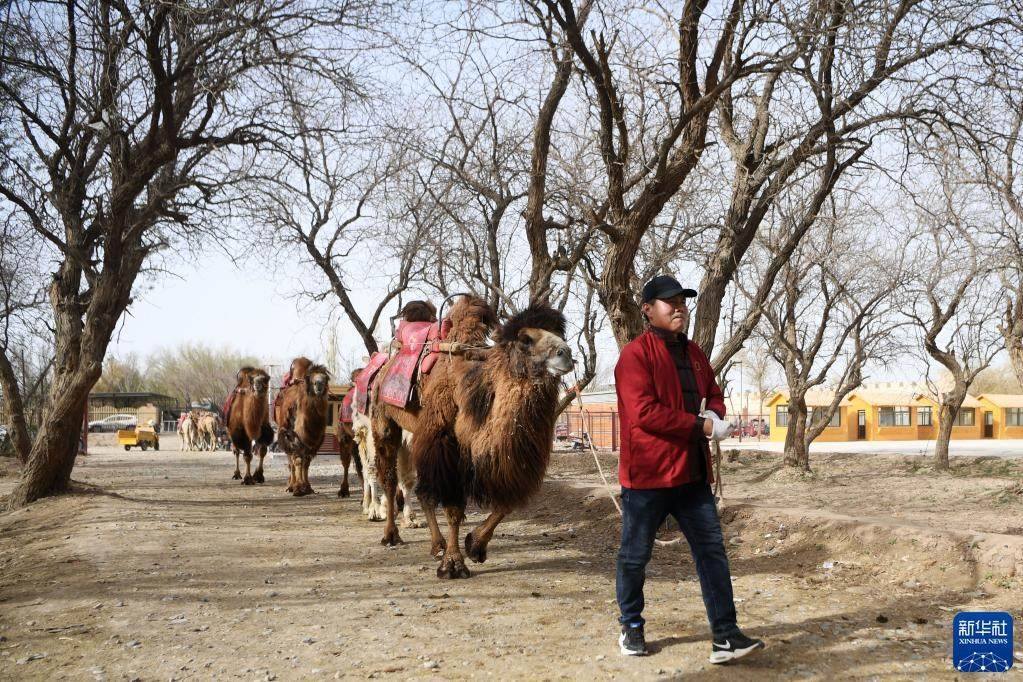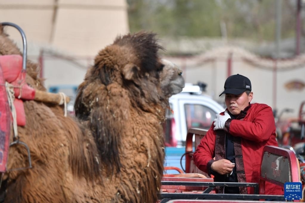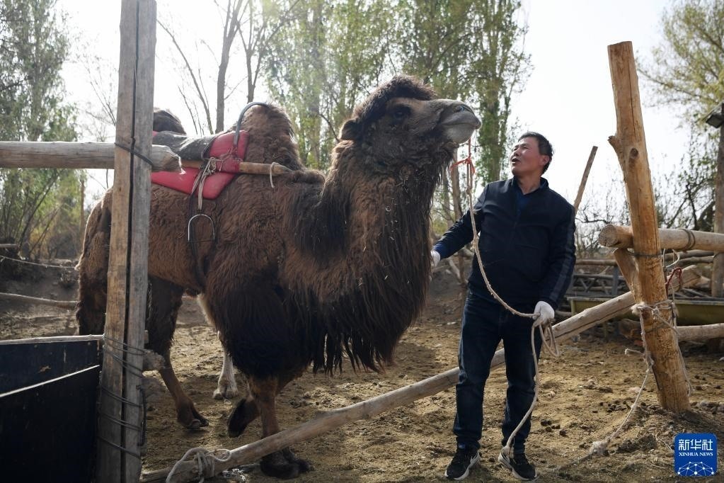 換上景區(qū)工作服的曹文華牽著駱駝準(zhǔn)備“上班”(4月24日攝)。