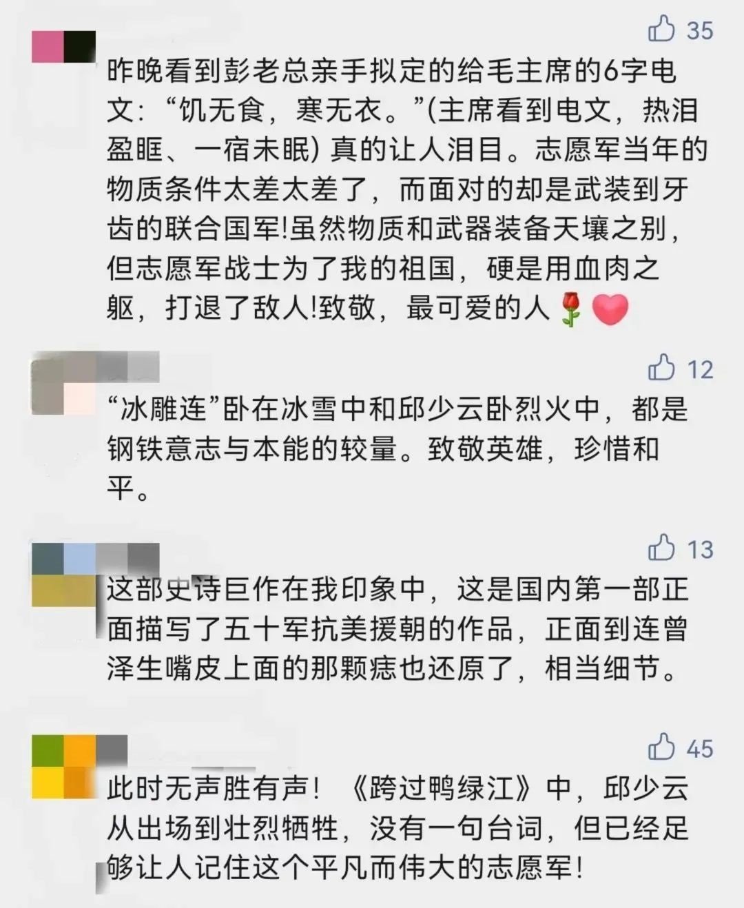 “抗美援朝絕對是值得紀念和謳歌的奇跡!這部電視劇是一部愛國主義教育的活教材!”這是網(wǎng)友對這部劇的評價。