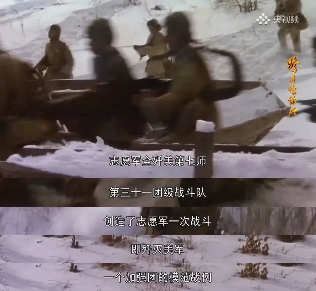 “志愿軍全殲美第七師第三十一團級戰(zhàn)斗隊,創(chuàng)造了志愿軍一次戰(zhàn)斗即殲滅美軍一個加強團的模范戰(zhàn)例?!?/p>