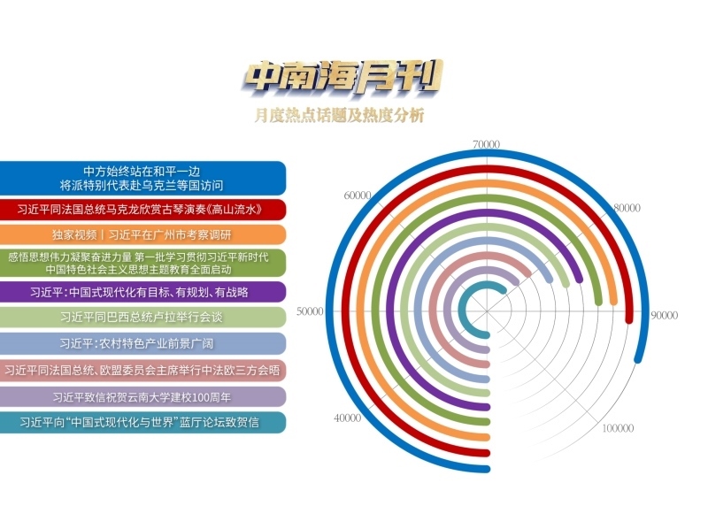 央視網(wǎng)“智聞”系統(tǒng)提取分析4月全網(wǎng)時(shí)政新聞熱點(diǎn)顯示,“中方始終站在和平一邊,將派特別代表赴烏克蘭等國訪問”“中法元首非正式會晤”“習(xí)近平在廣州市考察調(diào)研”等話題備受關(guān)注。