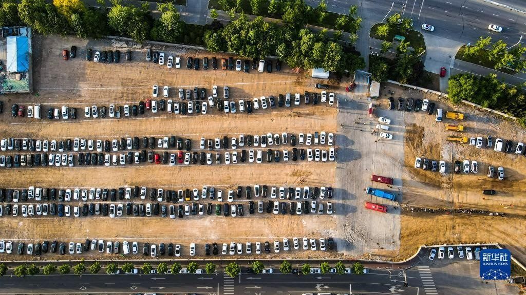 這是4月29日拍攝的淄博市臨淄區(qū)新建可容納1200輛車的臨時停車場,該停車場供游客免費停車(無人機照片)。   新華社發(fā)(孫有華攝)