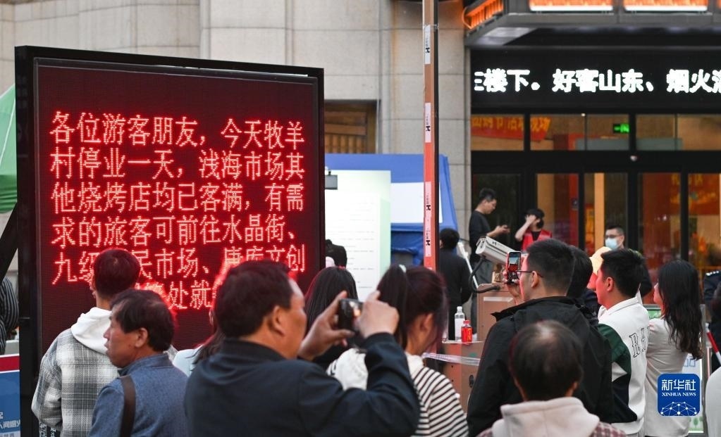 “五一”假期期間,來自全國各地的游客紛紛前往山東淄博,品嘗走紅的“靈魂燒烤”。淄博市政府和市民積極采取措施為游客提供便利,如加設臨時停車點,新增21條燒烤公交定制專線,調整主城區(qū)42條常規(guī)公交線路以覆蓋33家燒烤店,規(guī)范住宿價格,商場和影院提供夜間休息服務等。同時,由居民、機關工作人員等自發(fā)組成的數萬名志愿者進入車站、社區(qū)、燒烤點,為游客提供交通、住宿、旅游引導等方面的服務。一個個“走心”的瞬間,溫暖著每一名游客。   新華社發(fā)(董乃德攝)