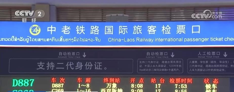 記者 范紫霄:經(jīng)過20分鐘的車程,我們現(xiàn)在已經(jīng)到了昆明南站的西進站口?!拔逡弧毙¢L假已經(jīng)到來,大家可以看到我身后人頭攢動、人流不斷。今天,我們也將體驗一下當日就能直達老撾萬象的D887中老鐵路國際客運列車。這趟列車在今早8時08分發(fā)車。