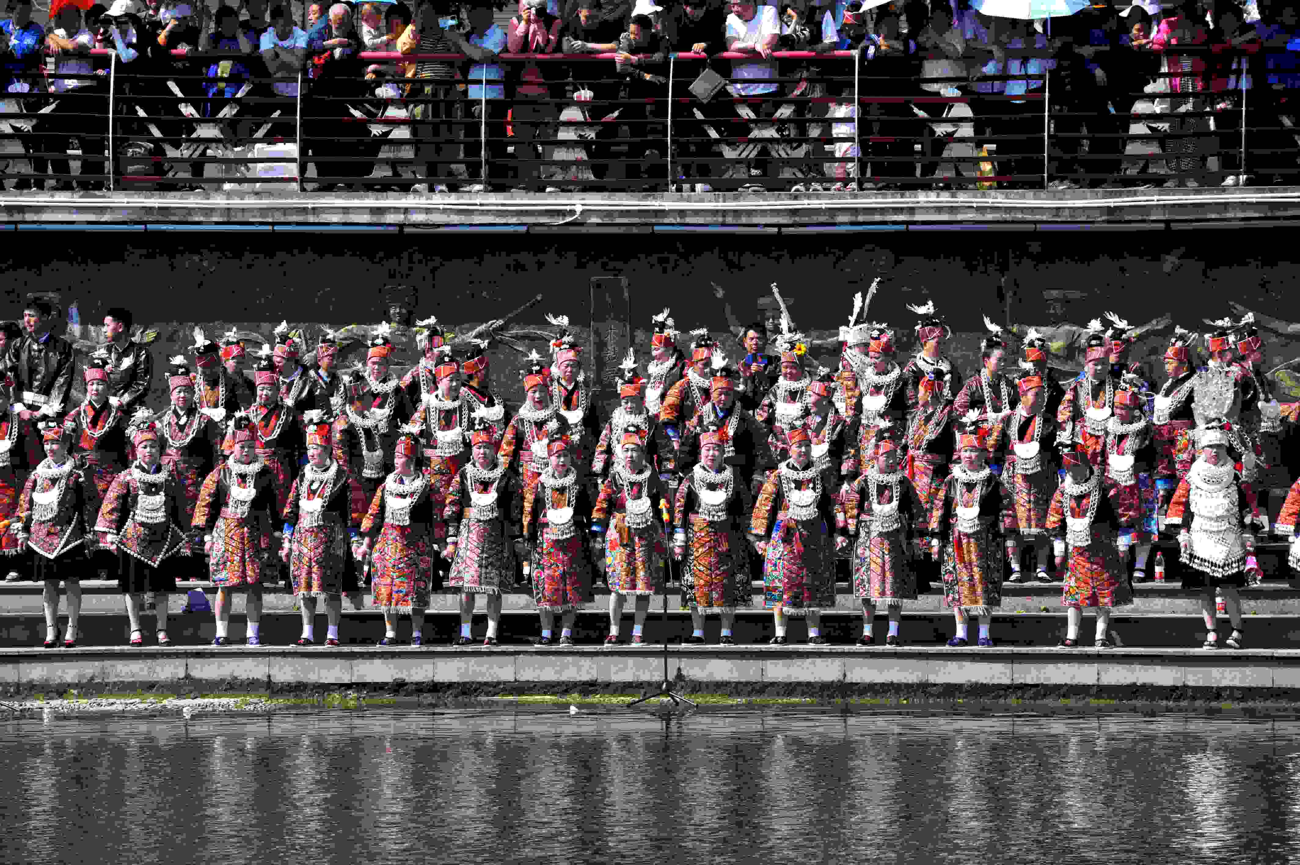 貴州臺江:翁你河畔上演萬人苗歌對唱