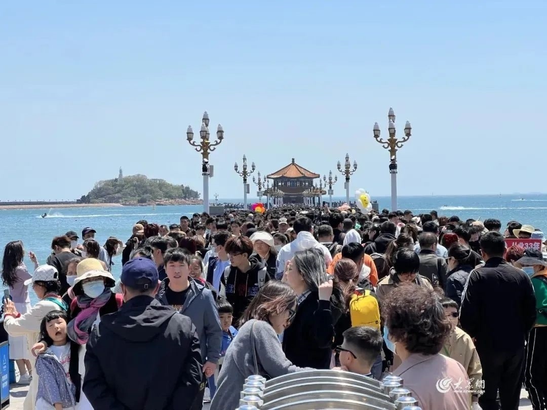 青島:家人們誰懂啊,棧橋成了人橋