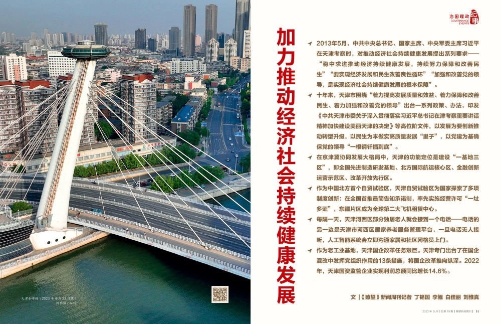時光回到十年前。2013年5月,中共中央總書記、國家主席、中央軍委主席習(xí)近平在天津考察時,對推動經(jīng)濟社會持續(xù)健康發(fā)展提出系列要求——“穩(wěn)中求進推動經(jīng)濟持續(xù)健康發(fā)展,持續(xù)努力保障和改善民生”“要實現(xiàn)經(jīng)濟發(fā)展和民生改善良性循環(huán)”“加強和改善黨的領(lǐng)導(dǎo),是實現(xiàn)經(jīng)濟社會持續(xù)健康發(fā)展的根本保障”。