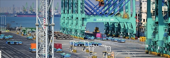 天津港位于“一帶一路”海陸交匯點,是京津冀地區(qū)的海上門戶。為更好地服務(wù)貿(mào)易企業(yè),天津港近期開通數(shù)條“一帶一路”及RCEP(《區(qū)域全面經(jīng)濟伙伴關(guān)系協(xié)定》)新航線?!半S著新航線的開通,天津到東南亞國家的海上運輸時間最少可縮短至9天,港口運輸生產(chǎn)活力持續(xù)增強?!碧旖蚋酃煞萦邢薰緲I(yè)務(wù)部航線開發(fā)經(jīng)理劉鑫說。