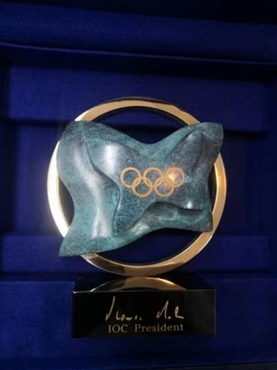 據(jù)介紹,該獎(jiǎng)杯由被譽(yù)為“當(dāng)代米開朗基羅”的西班牙國寶級雕塑家Rosa Serra設(shè)計(jì)制作,基座配有現(xiàn)任國際奧委會主席巴赫的親筆簽名。該獎(jiǎng)杯以在瑞士洛桑的國際奧委會總部大樓“奧林匹克之家”為原型設(shè)計(jì),大樓為和平鴿造型,象征著和平與友誼,是奧林匹克運(yùn)動(dòng)傳遞的最重要信息之一。據(jù)悉,“奧林匹克之家”大樓于2019年6月23日國際奧林匹克日正式啟用。