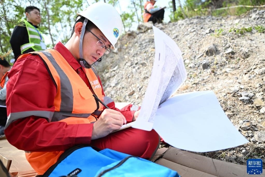 當日,在位于薊州區(qū)的偏橋子滑坡地質(zhì)災害隱患點,參賽選手開展了野外實操考試。選手要在有限時間內(nèi)完成對滑坡體的邊界以及各類要素的調(diào)查、信息記錄和綜合整理分析,以考察選手的野外地質(zhì)勘測和綜合運用能力,更好地服務于今后的地質(zhì)災害防治工作。