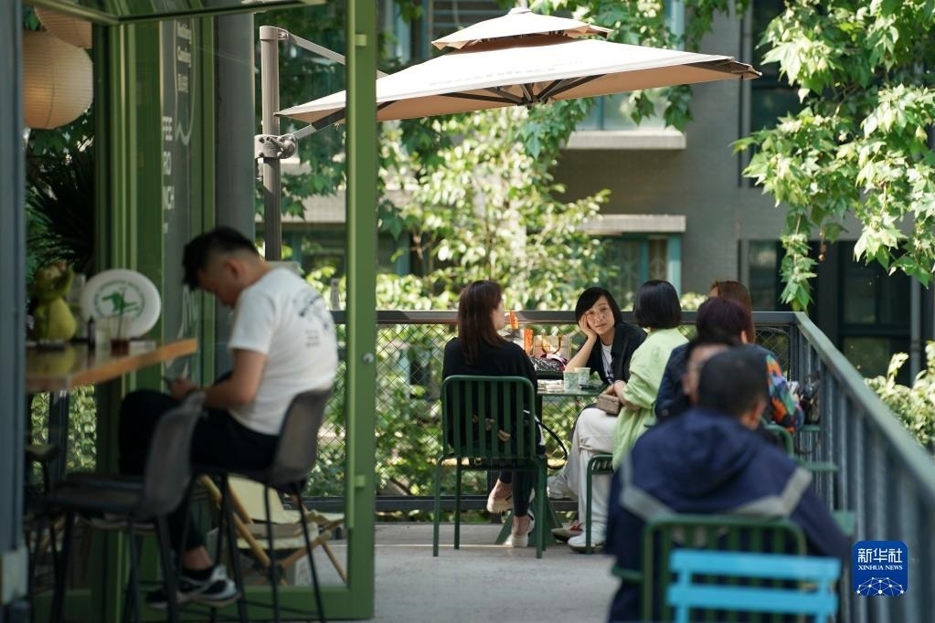 5月11日,人們在西安市雁塔區(qū)三五一一社區(qū)一家咖啡館消費休閑。